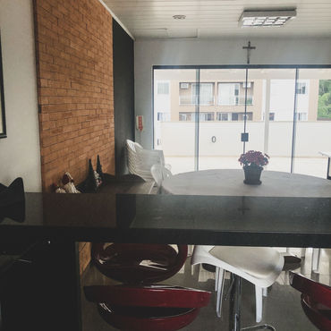 Pontos que foram privilegiados no projeto: O espaço é de uma “estética padrão”, não há identidade da empresa. E possui certa seriedade, ao contrário de acolhimento que seria interessante para o uso. O prédio possui uma vista maravilhosa para natureza, e também presença de bastante iluminação natural.